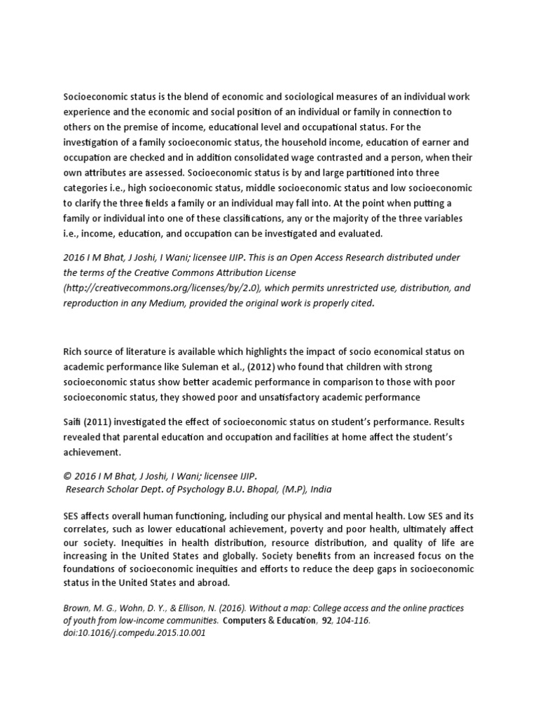 The present study highlights the graded relationship between socioeconomic status (ses) and academic achievement. 20/02/2022 · result socioeconomic status factor is the one that most impact p ositively on academic achievement.