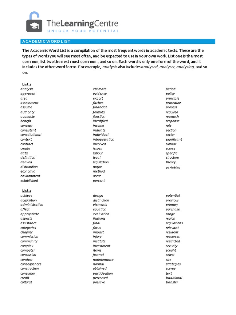 The academic word list (awl), developed by averil coxhead at victoria university of wellington, new zealand, contains 570 word families . Why teach the awl ? The number after each headword is the sublist the word family is in. Students will need to know this vocabulary if they hope to study . We then discuss different strategies and activities with which to tech the awl to our english for academic purposes students. Wondering what to list under the academic strengths section on your college application? Discover a list of natural and manufactured black items, symbolism related to the color black, and how black is represented in psychology and other cultures. It includes the awl highlighter and the awl gapmaker. This means that they are very general academic words. The academic word list (awl) is a list of 570 head words (and their connected sublists) that occur frequently in academic texts. Headwords, other words in the family. Using english for academic purposes: We've got plenty of ideas and examples. Entries that appear on the list are . This comprehensive thanksgiving vocabulary word list can be used in the classroom in so many ways. Information and advice for students in higher education. The academic word list (awl), developed by averil coxhead at victoria university of wellington, new zealand, contains 570 word families . The academic word list is a list of 570 words that appear frequently in all academic texts. This site will help you expand your academic vocabulary using the academic word list. The headwords of the academic word list (awl) are the stem form of the words. Nor does it contain words which are of general use and very high frequency. Resources tool including word lists, tutorials, quizzes and links to assist students to learn and successfully use academic vocabulary.